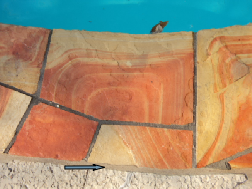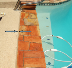 between the coping (rock, brick, coping stone) and the tile. *note picture below labeled “mortar joint”.